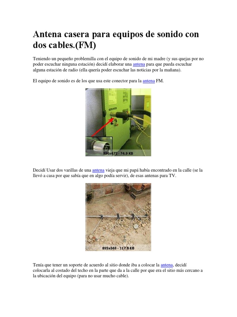 Antena casera para equipos de sonido con dos cables.(FM... en Taringa!